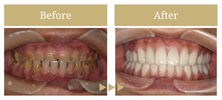 全顎的なセラミック治療によって、審美及び機能咬合回復を行った症例