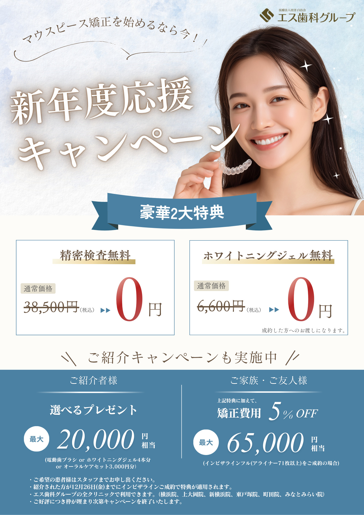 ただいまエス歯科グループでは、この冬だけの“新年度応援キャンペーン”を開催中です!